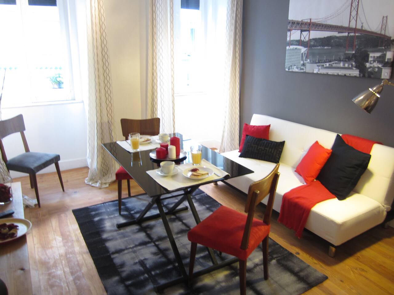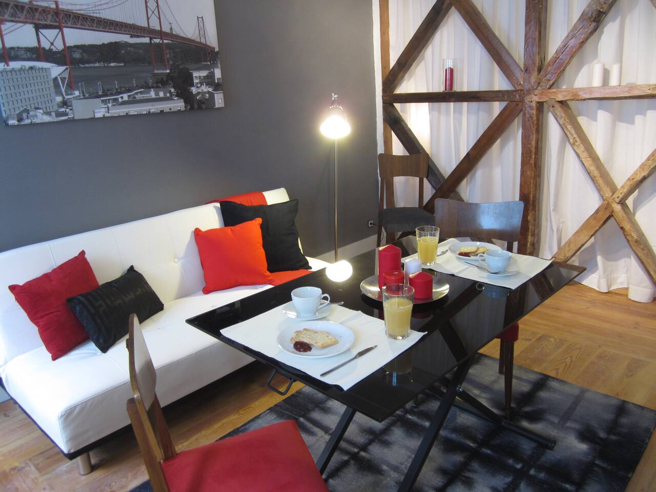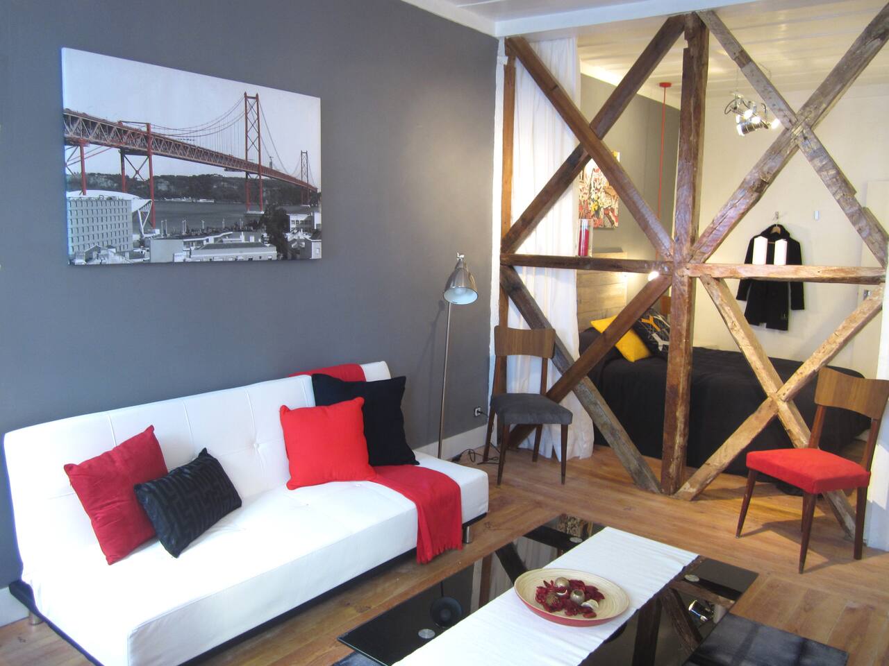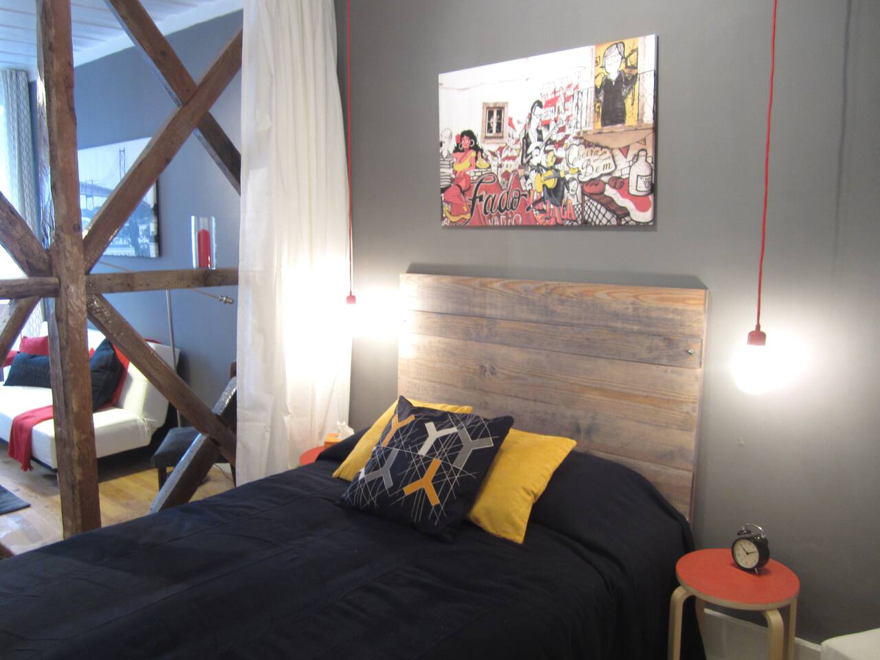 Welcome to one of our apartments in the heart of Lisbon! This apartment is situated on the 1st floor of a traditional Lisbon building in the Downtown district. It has lots of charm and personality. You will find a modern living room with a sofa bed, a spectacular bedroom with a double bed, a second bedroom with a single bed, bathroom with bathtub and a fully furnished kitchen. The apartment has been decorated with an industrial feel mixed with some touches of traditional Portuguese architecture such as the exposed timber frame “Cruz de Santo André” typical of 18th century Lisbon architecture. Cable TV and WiFi internet access are available. We do not have air conditioning as we find there is no need for one. Portuguese houses are built to be cool even during the summer. If you'd like, we can provide you with fans! You will be a short walk away from Rossio, the city's main square and the heart of downtown Lisbon, from three subway stations (Rossio, Martim Moniz and Retauradores), and the Rossio Train Station. You will also be a few minutes away from the historical neighbourhoods of Alfama and Bairro Alto. We are located 50m away from the queen of Fado, Amalia’s, birthplace and you will find plenty of small typical restaurants, supermarkets and an ATM literally within walking distance. Walking down the street, to the left will be the Martim Moniz square, the new trendy spot with new pubs and restaurants where the iconic 28 tramway starts its journey; to the right is Avenida da Liberdade, home to exclusive international boutiques to tempt and inspire as well as the Rua das Portas de Santo Antão street with the Coliseu music hall and traditional restaurants; and straight ahead to Rossio and Baixa Pombalina. Also check out our other listings for Lisbon Sant’Ana Apartments! We are a couple that loves to travel. In our apartment we have tried to translate what we like to find when we travel: the practicality of an apartment with the feeling of home away from home and the full experience of what it is like to live in Lisbon. We hope to hear from you soon! Nous parlons français! Hablamos español! Si parla italiano! 14246/AL