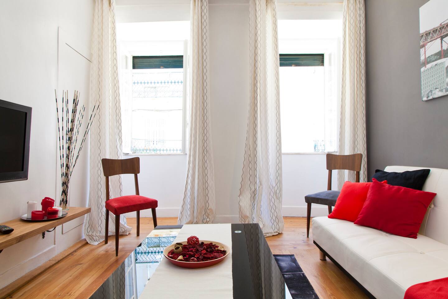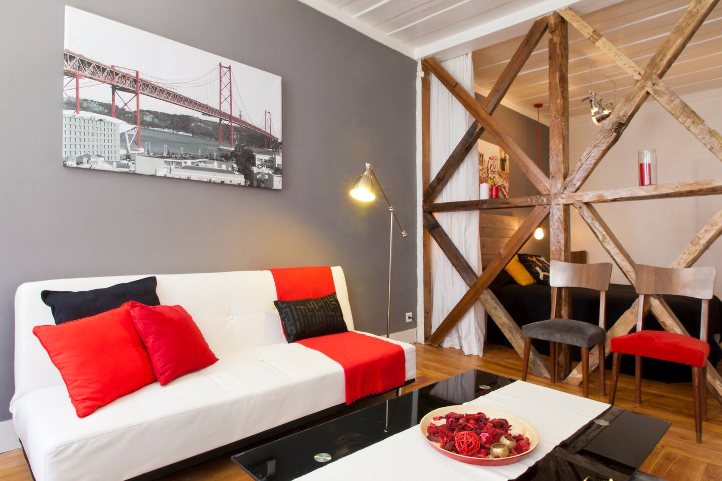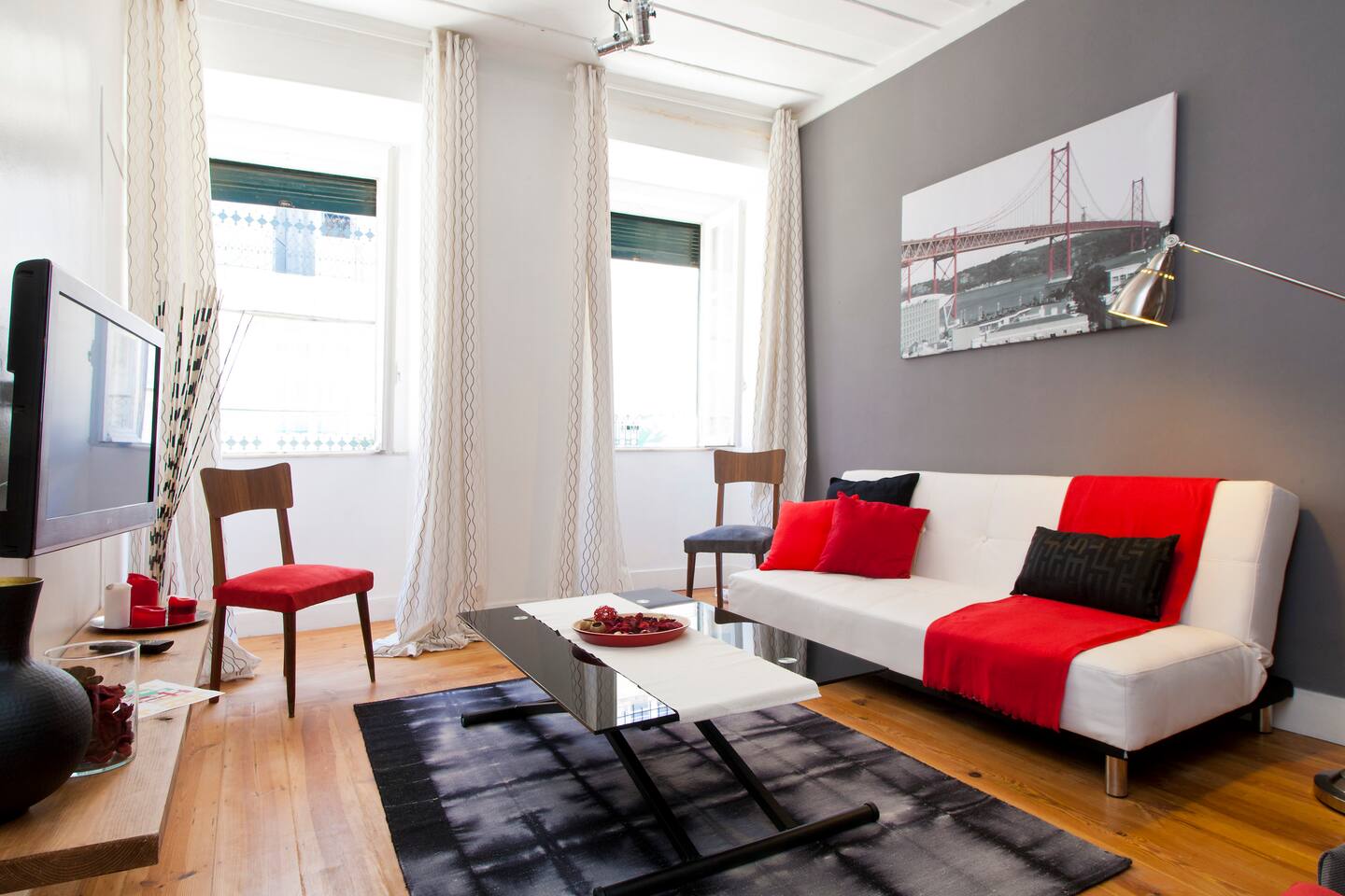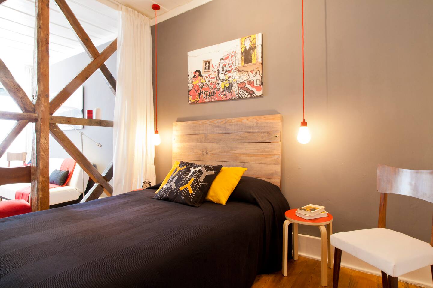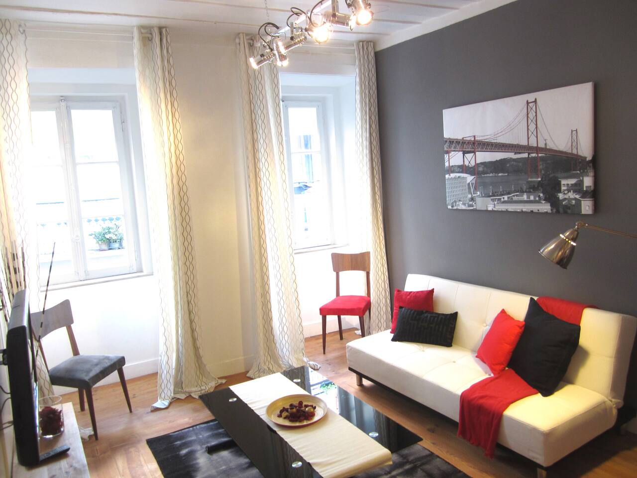 Welcome to one of our apartments in the heart of Lisbon! This apartment is situated on the 1st floor of a traditional Lisbon building in the Downtown district. It has lots of charm and personality. You will find a modern living room with a sofa bed, a spectacular bedroom with a double bed, a second bedroom with a single bed, bathroom with bathtub and a fully furnished kitchen. The apartment has been decorated with an industrial feel mixed with some touches of traditional Portuguese architecture such as the exposed timber frame “Cruz de Santo André” typical of 18th century Lisbon architecture. Cable TV and WiFi internet access are available. We do not have air conditioning as we find there is no need for one. Portuguese houses are built to be cool even during the summer. If you'd like, we can provide you with fans! You will be a short walk away from Rossio, the city's main square and the heart of downtown Lisbon, from three subway stations (Rossio, Martim Moniz and Retauradores), and the Rossio Train Station. You will also be a few minutes away from the historical neighbourhoods of Alfama and Bairro Alto. We are located 50m away from the queen of Fado, Amalia’s, birthplace and you will find plenty of small typical restaurants, supermarkets and an ATM literally within walking distance. Walking down the street, to the left will be the Martim Moniz square, the new trendy spot with new pubs and restaurants where the iconic 28 tramway starts its journey; to the right is Avenida da Liberdade, home to exclusive international boutiques to tempt and inspire as well as the Rua das Portas de Santo Antão street with the Coliseu music hall and traditional restaurants; and straight ahead to Rossio and Baixa Pombalina. Also check out our other listings for Lisbon Sant’Ana Apartments! We are a couple that loves to travel. In our apartment we have tried to translate what we like to find when we travel: the practicality of an apartment with the feeling of home away from home and the full experience of what it is like to live in Lisbon. We hope to hear from you soon! Nous parlons français! Hablamos español! Si parla italiano! 14246/AL