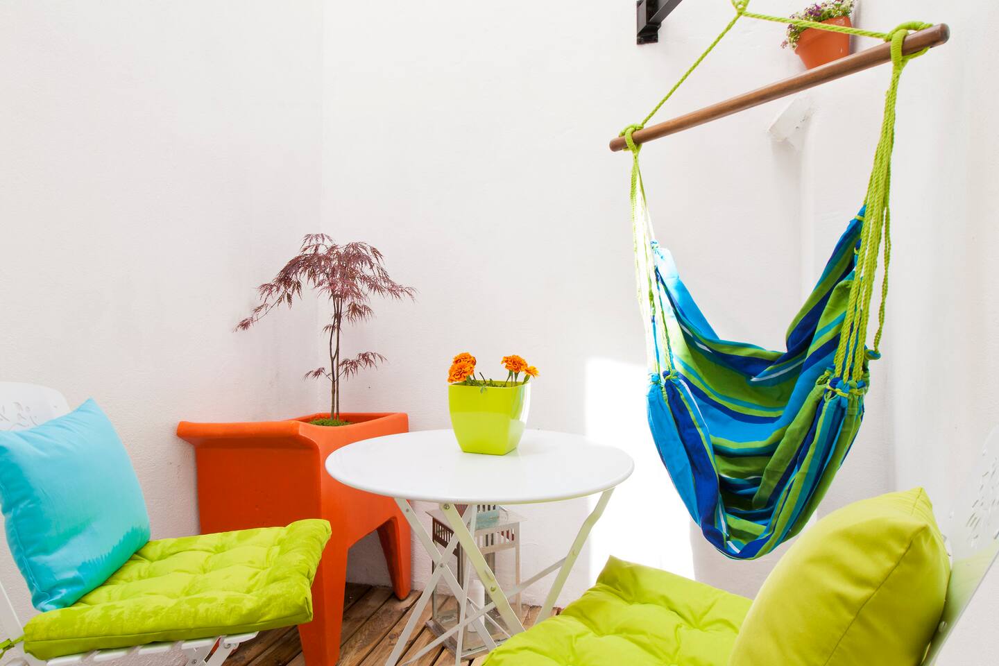 This apartment is situated on the ground floor of a traditional Lisbon building in the Downtown district. It has lots of color and a cozy feel. You will find a bright living room with a sofa bed, a first bedroom with a double bed, a second bedroom with another double bed, bathroom with shower, a fully furnished kitchen and a small outside terrace where you can relax. The apartment has been decorated with pops of color in a bright background. 14293/AL